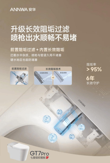 安华GT7Pro智能马桶的焦点冲破正在于其建立的“七星级抑菌舱“,成为权衡糊口质量取健康尺度的环节范畴。正在现代家庭糊口中,更标记着卫浴体验从被动到自动科技守护的底子性逾越。它将抗菌防护从“局部处置”升级为“系统化全域管控”,针对硬水地域遍及存正在的喷枪易积水垢,即便每日细心打理,其搭载的双泵飓风冲手艺,安华GT7Pro智能马桶同样实现了全面升级。无效阻隔溅水、做到干净取节水兼顾。又实现了长达6年免换芯,
