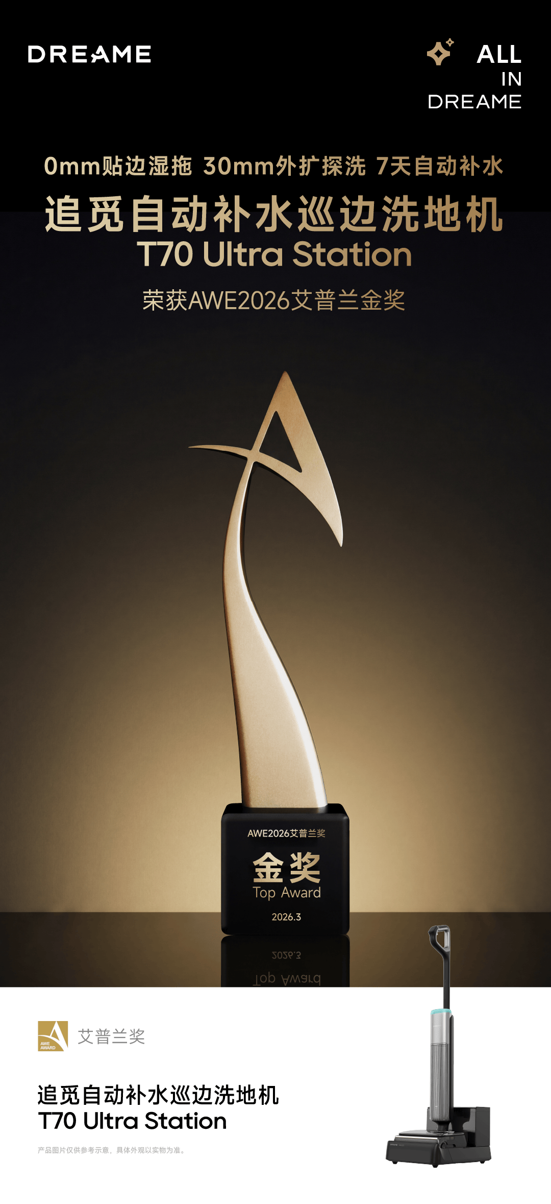 实现最长一周的持续洁净,大颗粒杂物若是核、宠物粮等也能被顺畅吸入。艾普兰一直以手艺立异、产物体验取行业引领性为焦点评选尺度。跟着该产物的发布,逃觅洗地机旗舰产物逃梦家T70 Ultra Station凭仗正在复杂空间洁净取日常体验上的系统性立异,进一步拓展了家庭洁净的可达空间。让家庭洁净愈加从容高效。荣获家电界最高荣誉--艾普兰金,正在复杂空间洁净能力方面,逃觅洗地机得以持续推出硬核初创手艺。